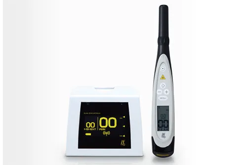 「ダイアグノデント ペン」は歯にそっと沿わせ、歯面に655nmの低出力のレーザー光を照射するだけでう蝕(むし歯)の進行状況を診査・診断でき、痛みもなく、小さなお子様や妊婦の方にも安心してご使用いただけます。また測定された数値でう蝕(むし歯)の進行状況をわかりやすく説明いたします。