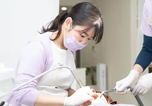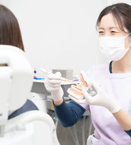 歯科医師の意見を押し付けることはせず、患者さんのご希望をしっかりお伺いしながら、一緒に治療を進めます。皆さまと信頼関係を築けるように心がけてまいりますので、時間をかけてじっくり治療に取り組んでいきましょう。