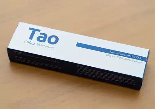 そんな疑問を解決してくれるのが、ホワイトニングです。当院では、40%と濃度の高いTao オフィスホワイトニングという薬剤を使用しております。濃度が高い為、より早く白さを実感していただけます。